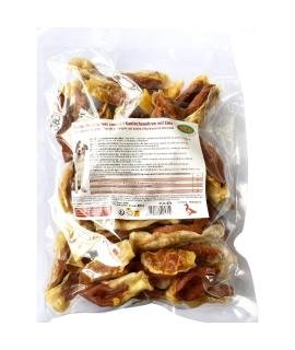 Esta deliciosa y crujiente oreja de conejo está rellena de pato. Es un snack bajo en calorías y de tamaño pequeño, ideal para dar como recompensa.