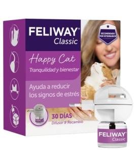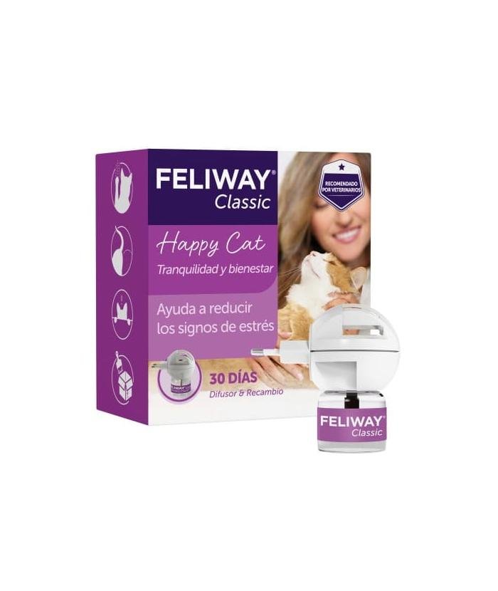 El FELIWAY Classic es la solución ideal para ayudar a tu gato a sentirse tranquilo, seguro y cómodo dentro de casa. Los cambios en el entorno, el ruido, la falta de estabilidad o la convivencia con otros animales pueden generar estrés, marcaje, maullidos excesivos o comportamientos inquietos. Este difusor libera mensajes faciales felinos sintéticos que imitan las feromonas naturales de calma, creando un ambiente relajante para tu gato.